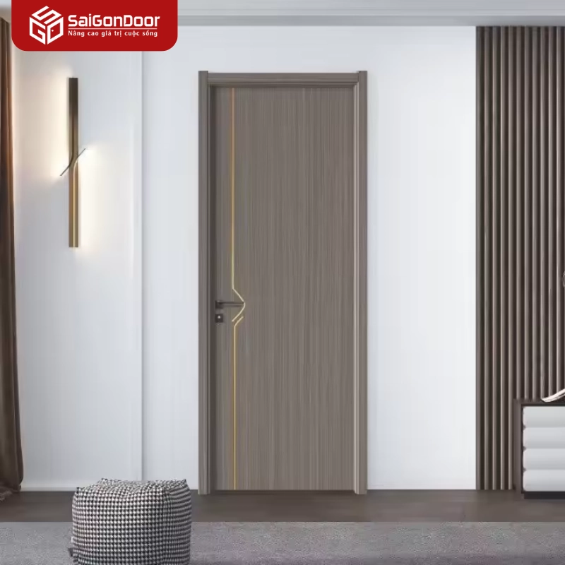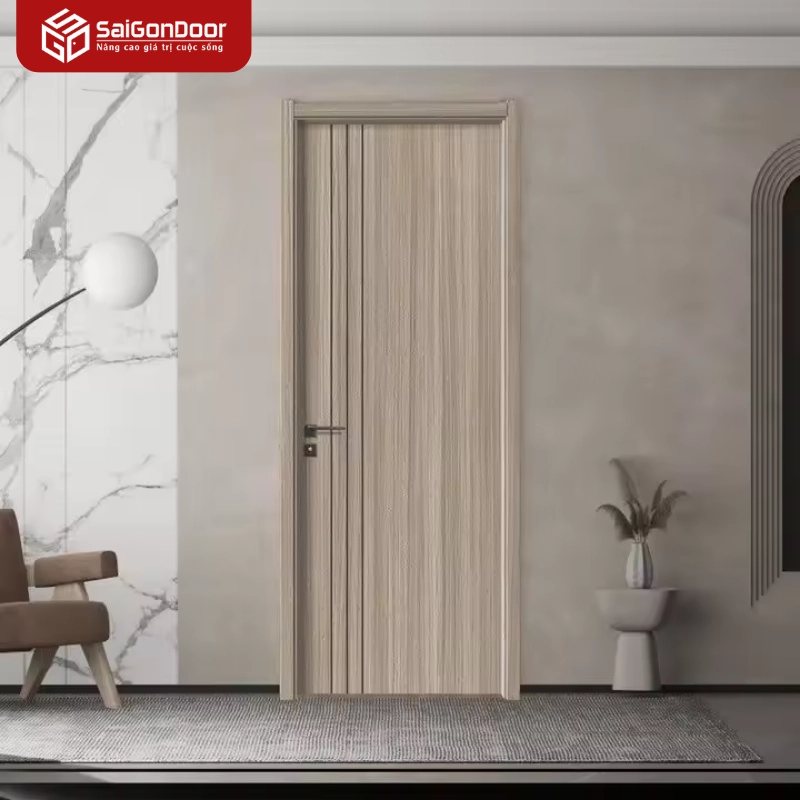 - Lõi PVC Foam/Composite: Bên trong cánh cửa là lõi PVC Foam hoặc vật liệu tổng hợp (WPC – Wood Plastic Composite) được gia cường. Lớp lõi này không chỉ tăng cường độ cứng vững cho cánh cửa mà còn giúp cách âm hiệu quả, đặc biệt là đảm bảo khả năng chống nước hoàn toàn, ngăn chặn mọi sự xâm nhập của hơi ẩm từ bên trong.